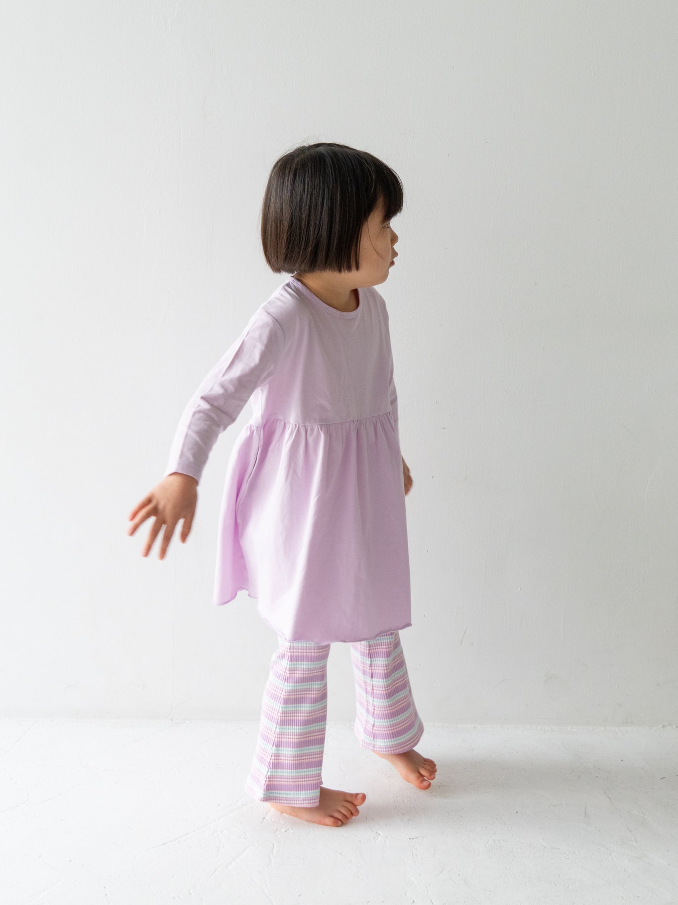 フレアパンツを合わせれば、また違った雰囲気で楽しめます。