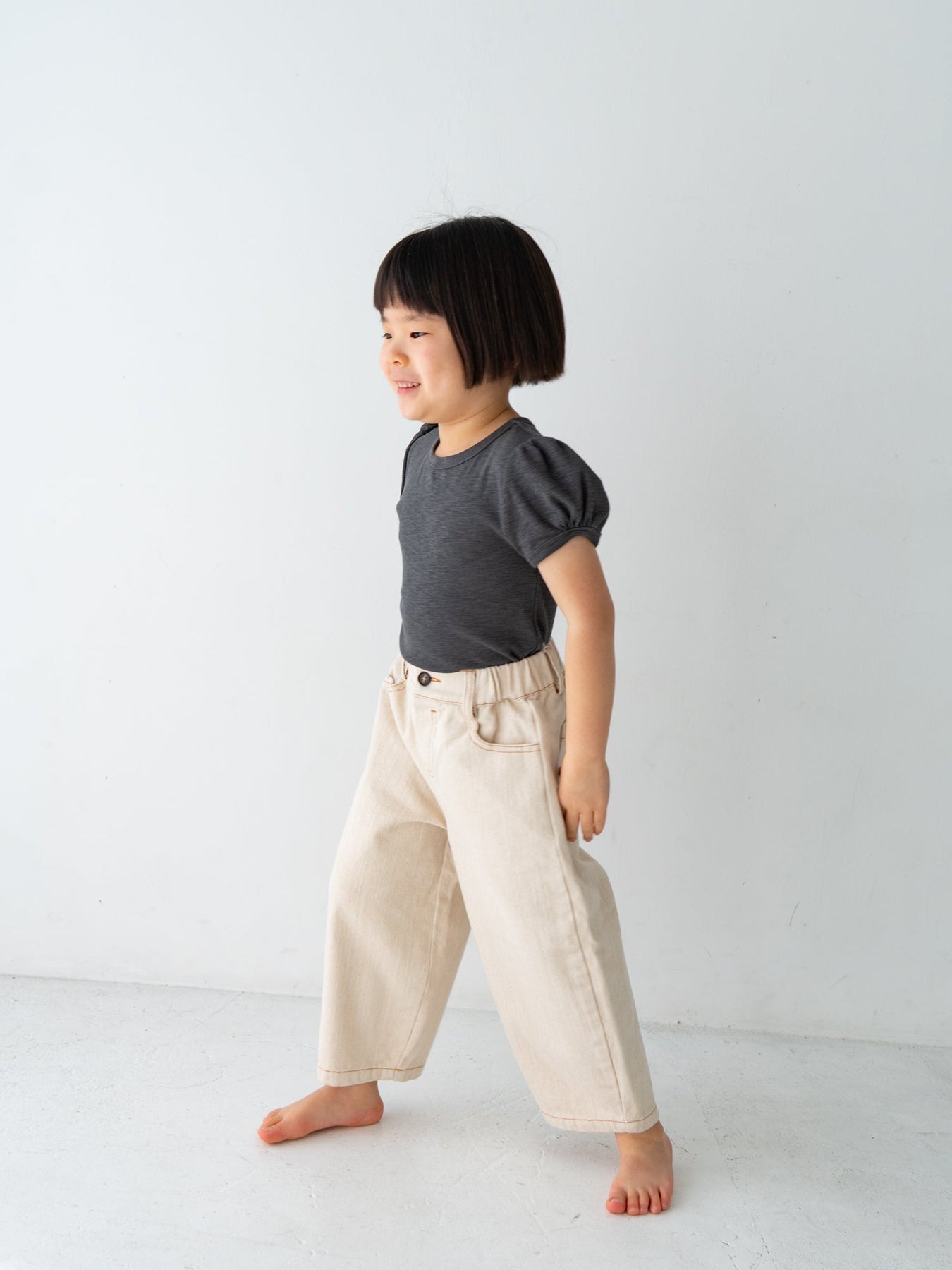 ゆったりとしたテーパードシルエットで、とにかく楽ちん&動きやすい。