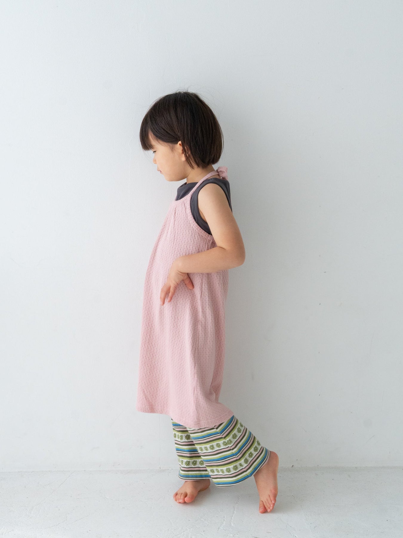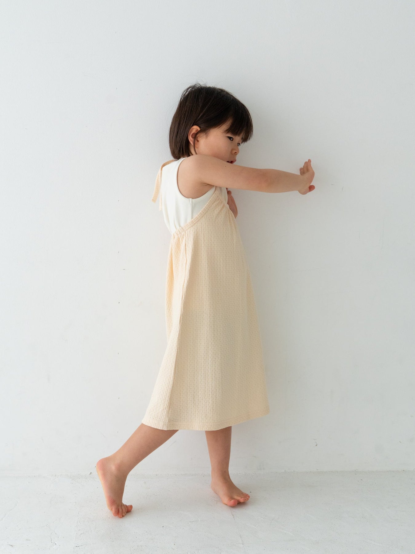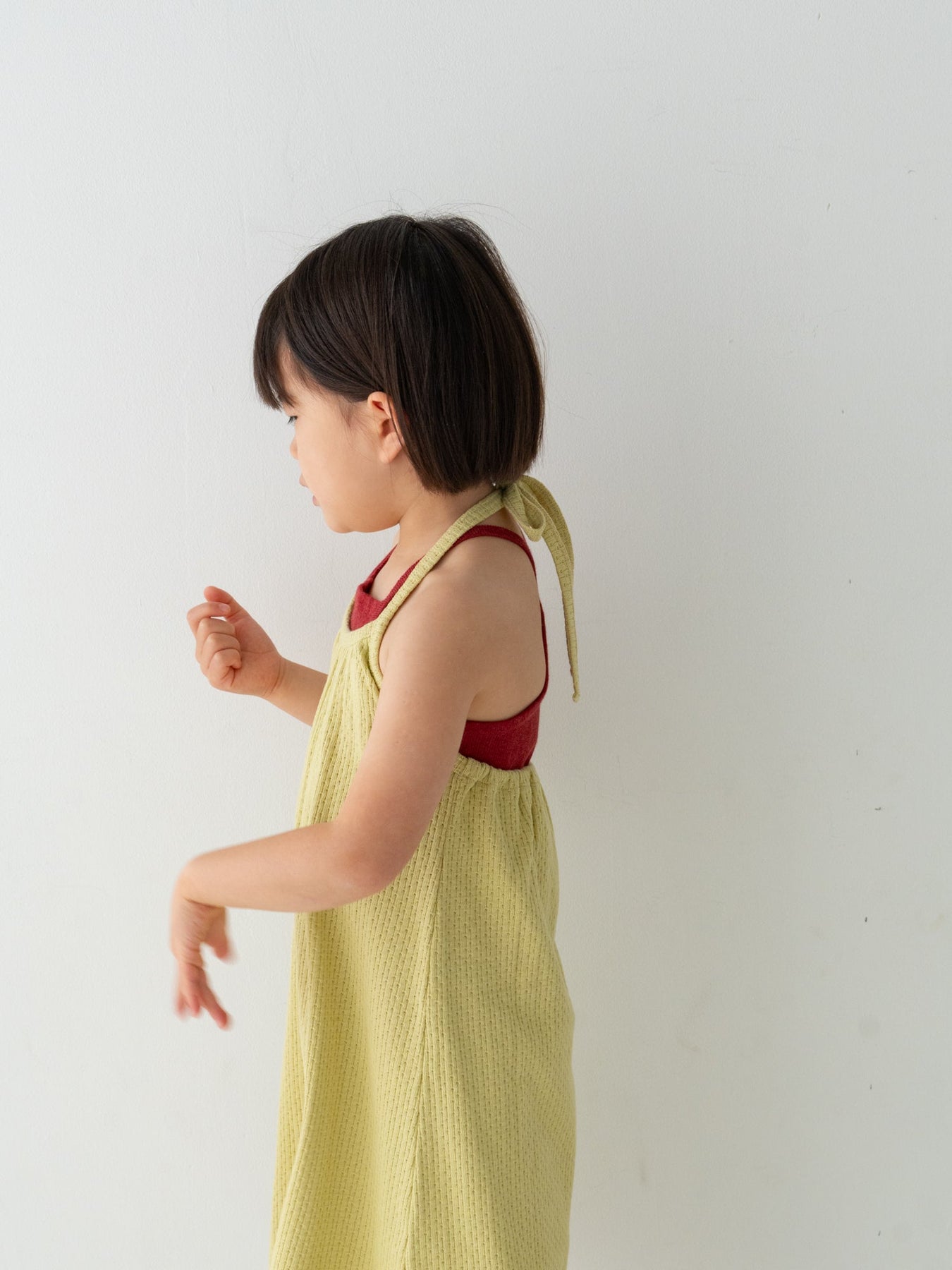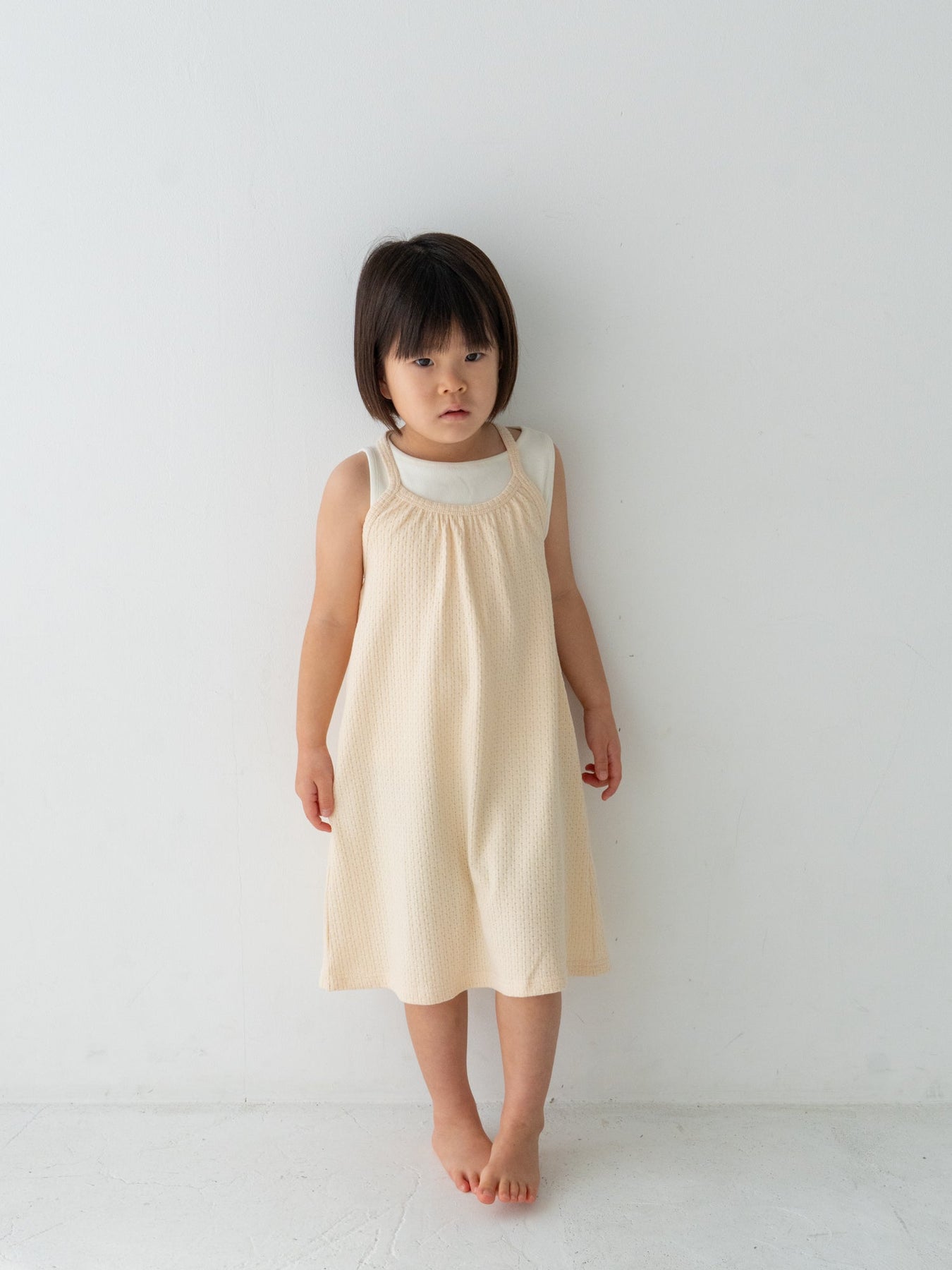 タンクトップやTシャツの上に合わせるだけで、しっかりかわいいスタイルに。