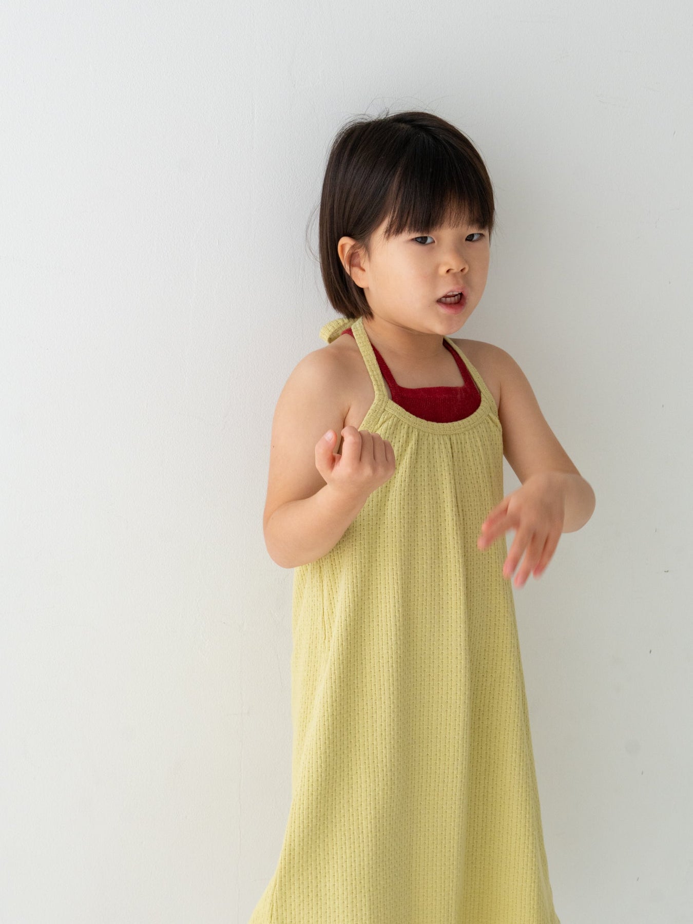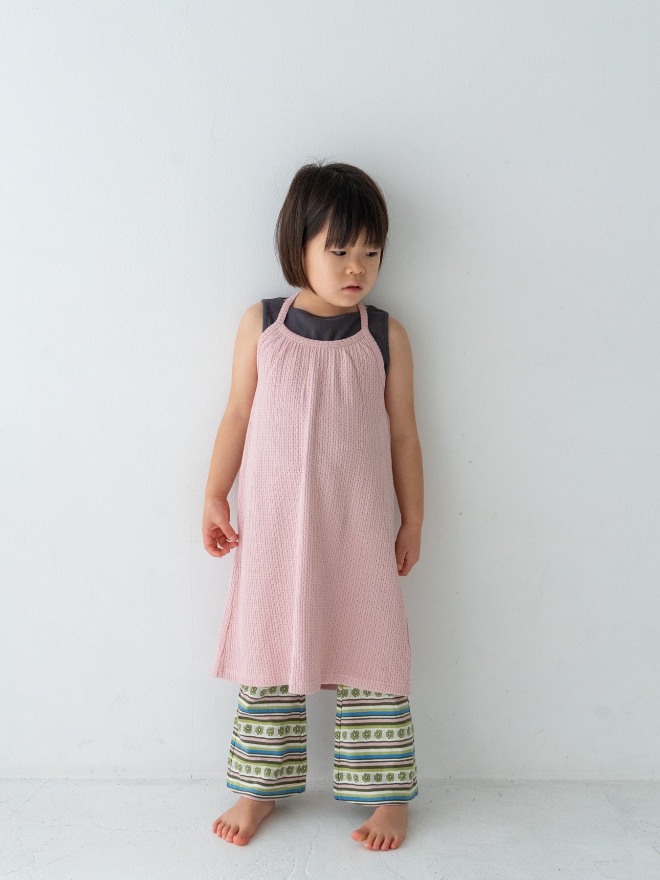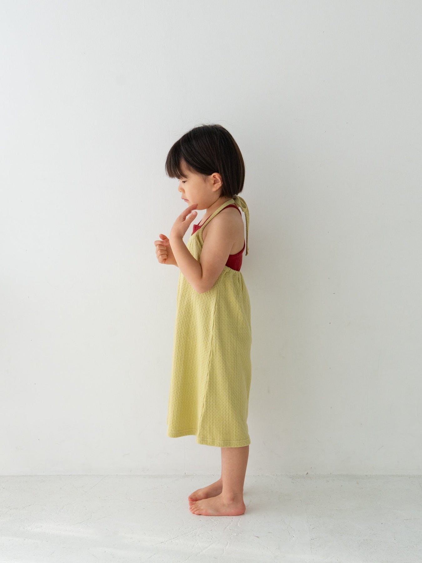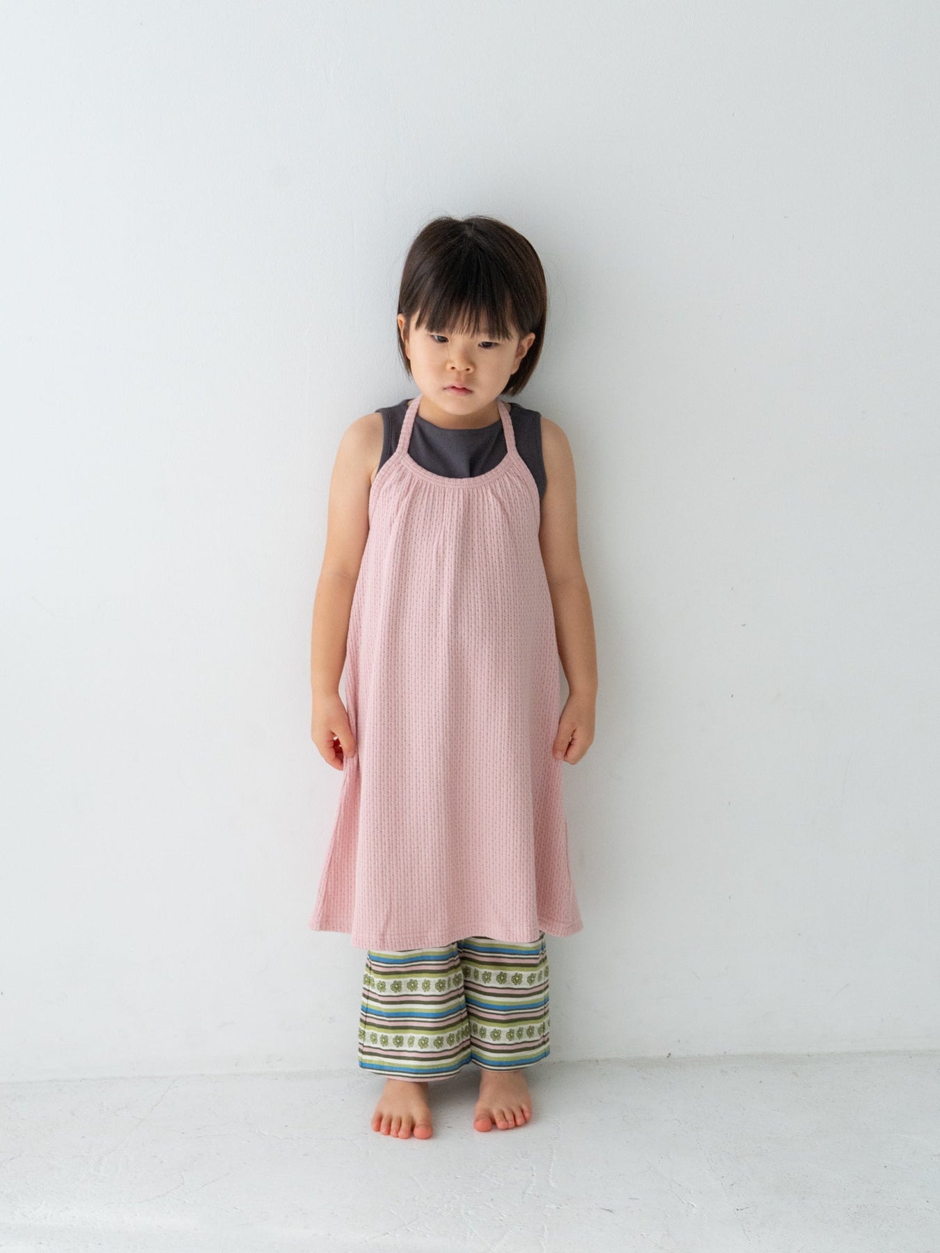 タンクトップやTシャツの上に合わせるだけで、しっかりかわいいスタイルに。