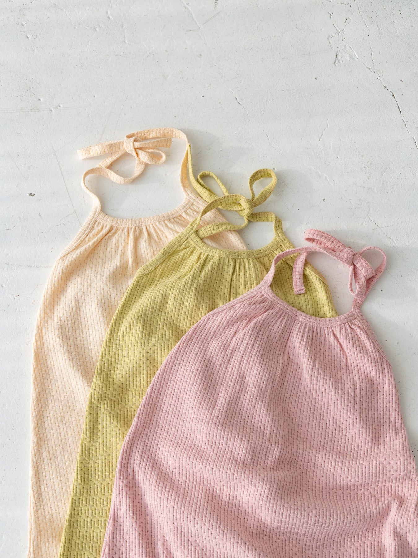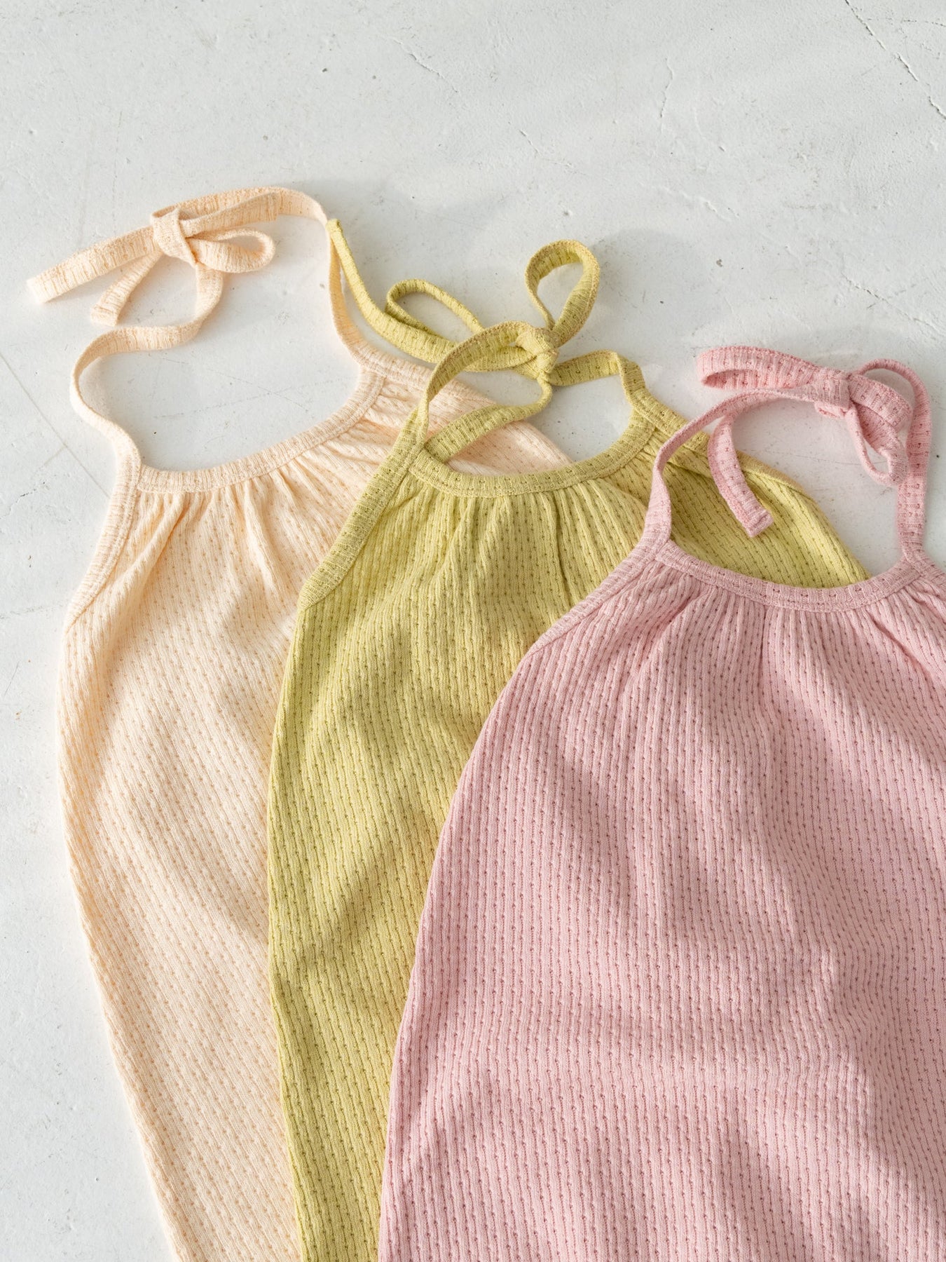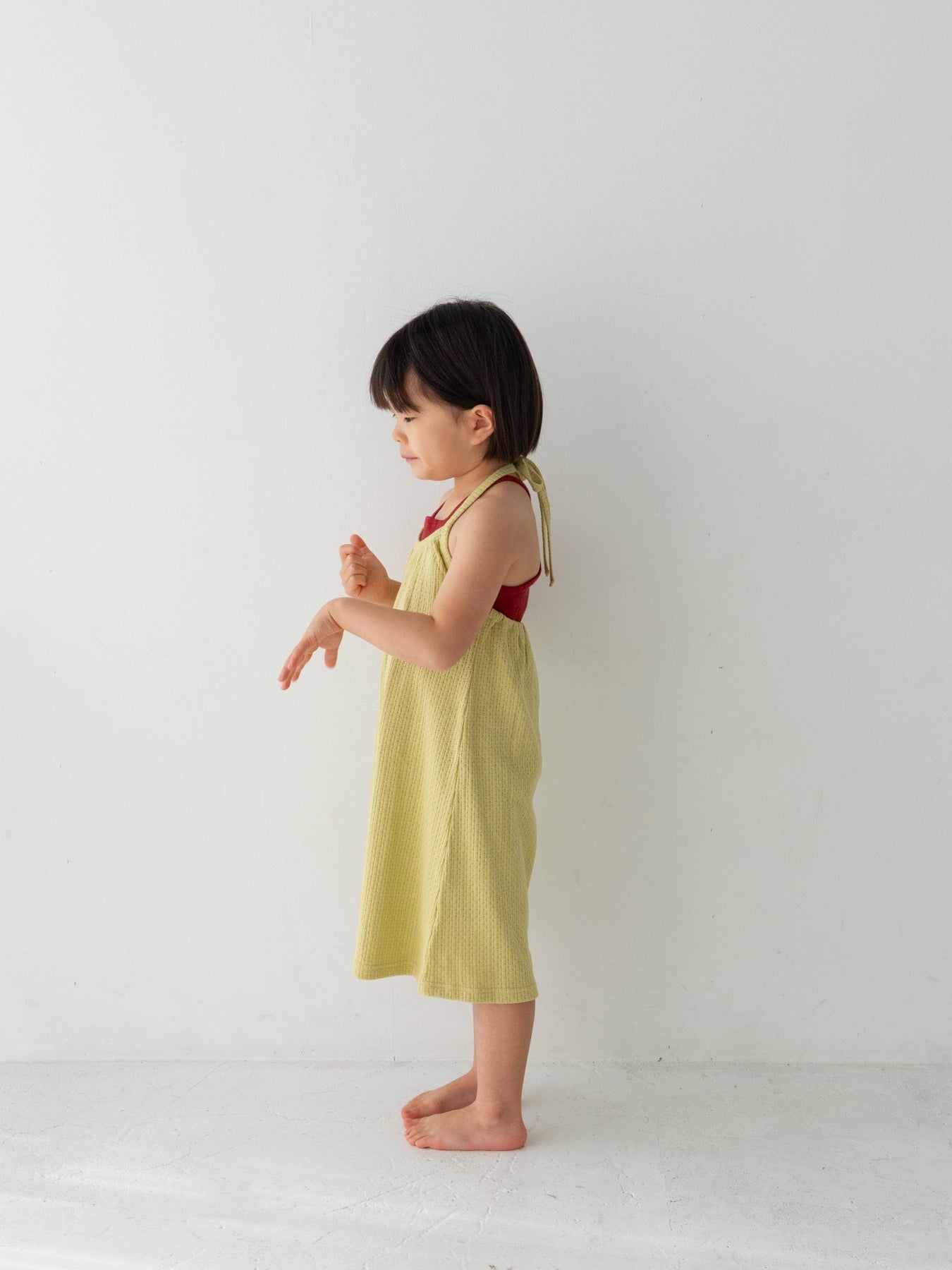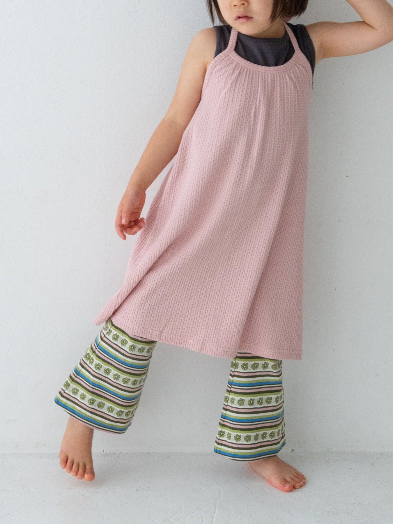 タンクトップやTシャツの上に合わせるだけで、しっかりかわいいスタイルに。