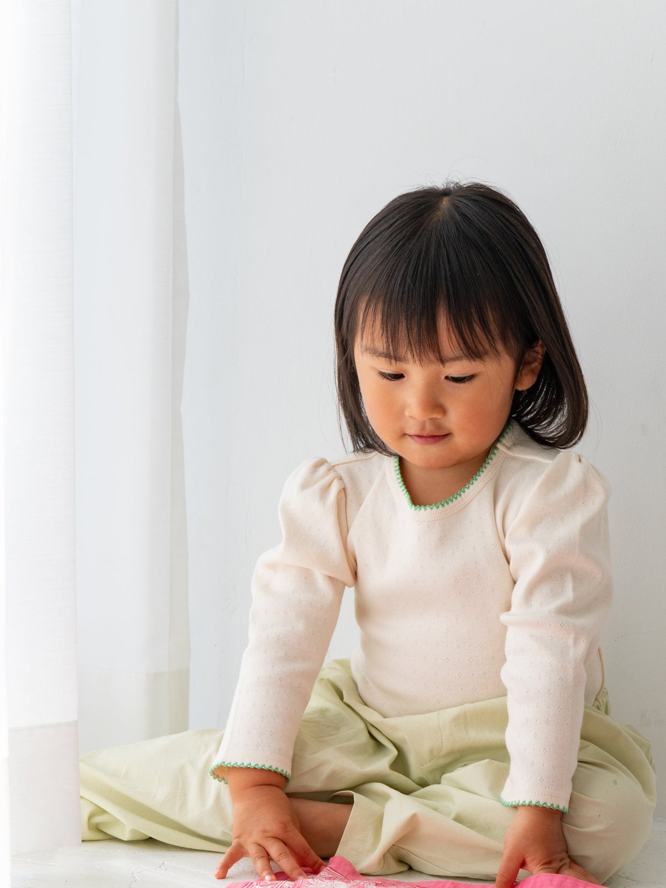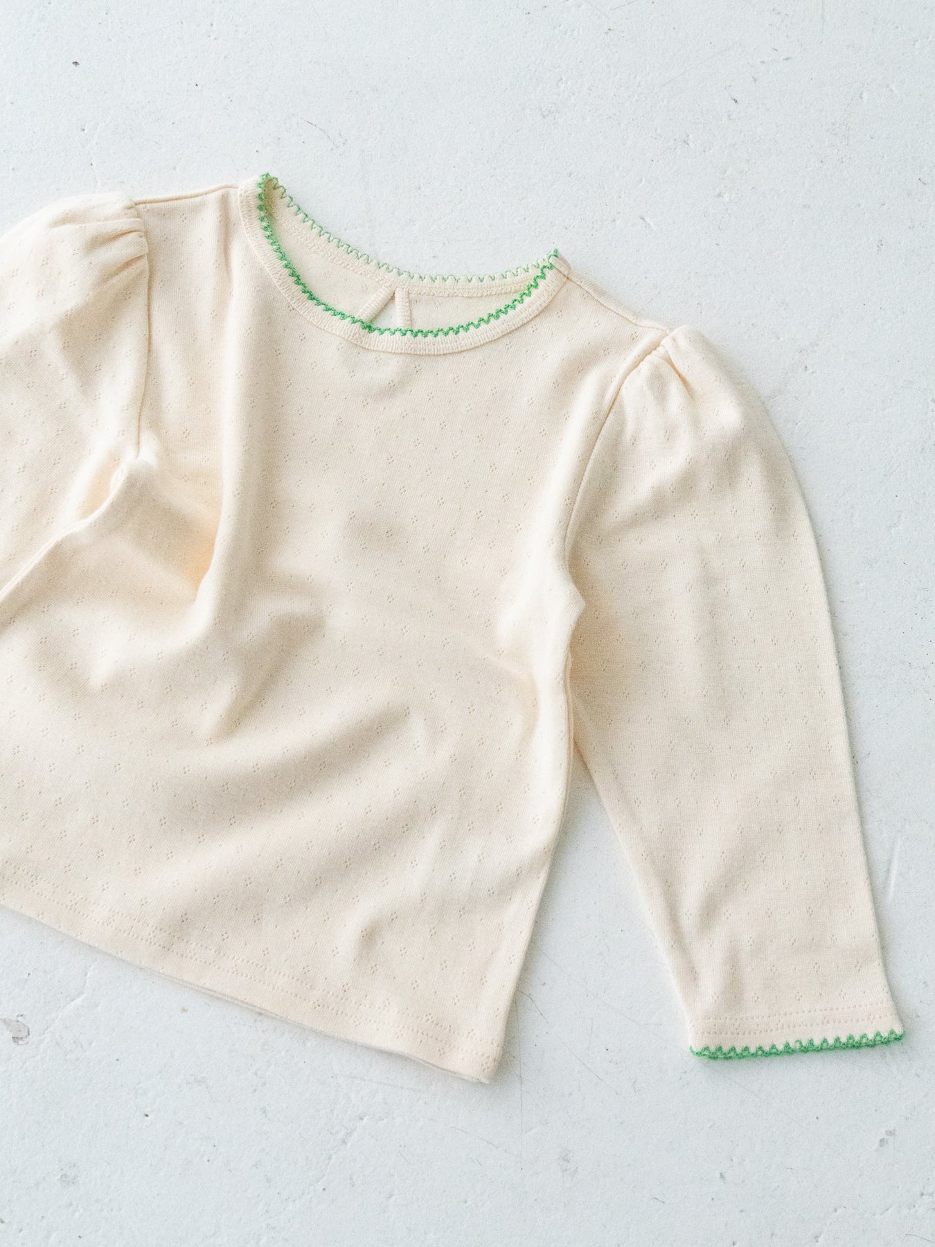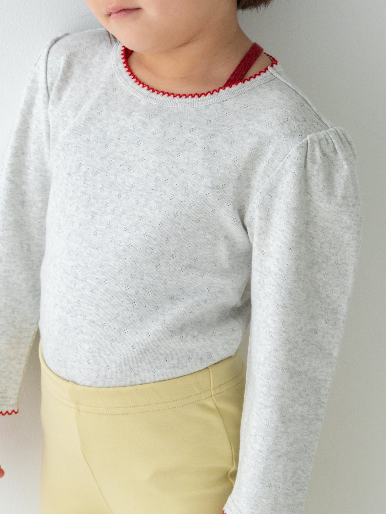 コットンのアイレット生地が魅力のロングスリーブトップス。