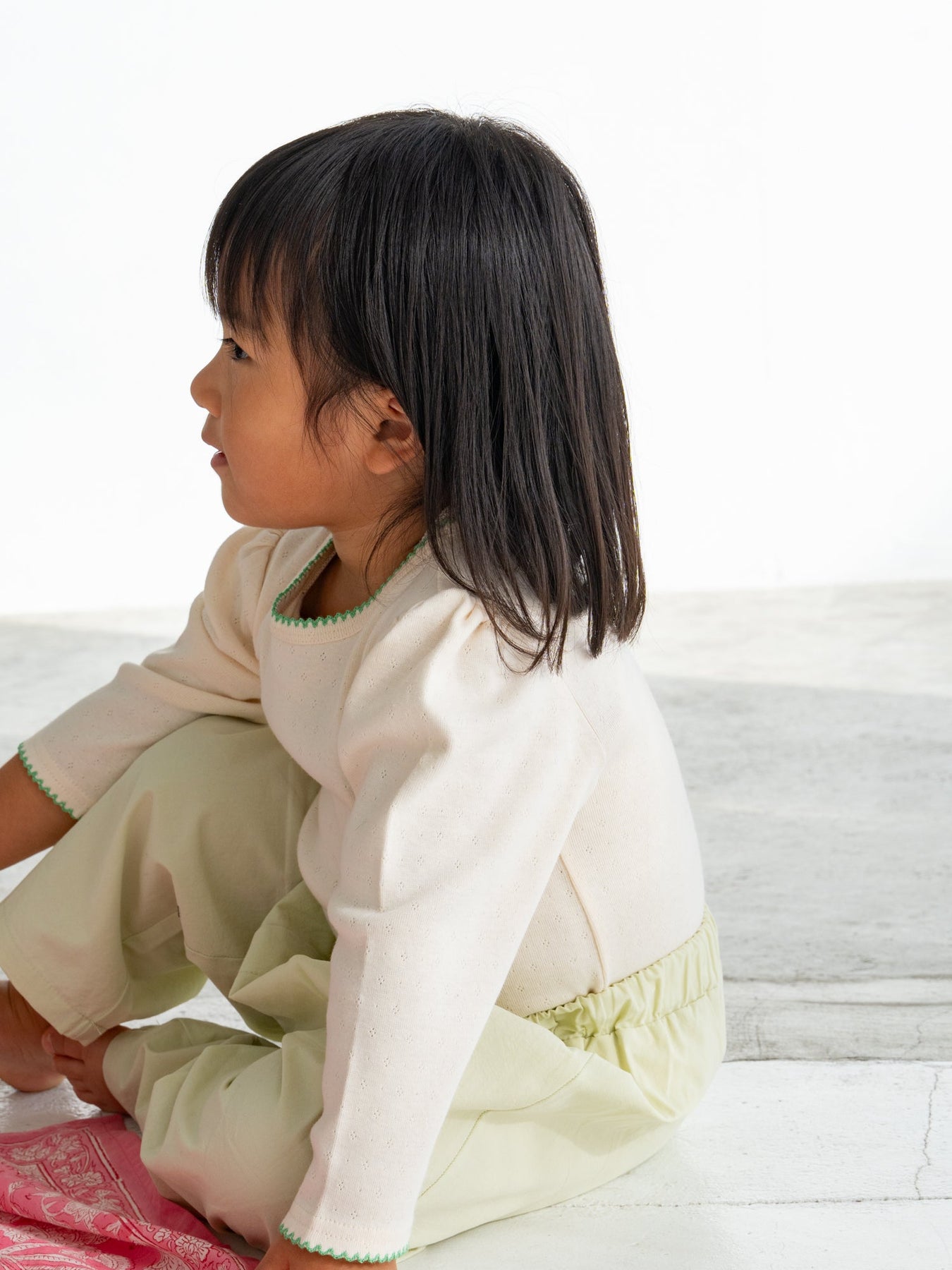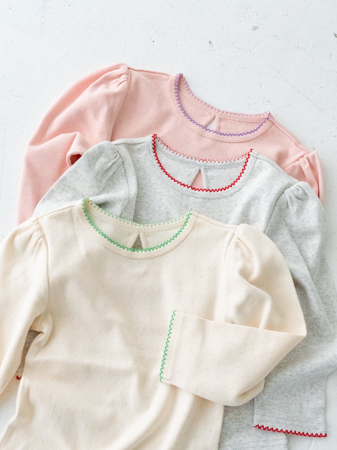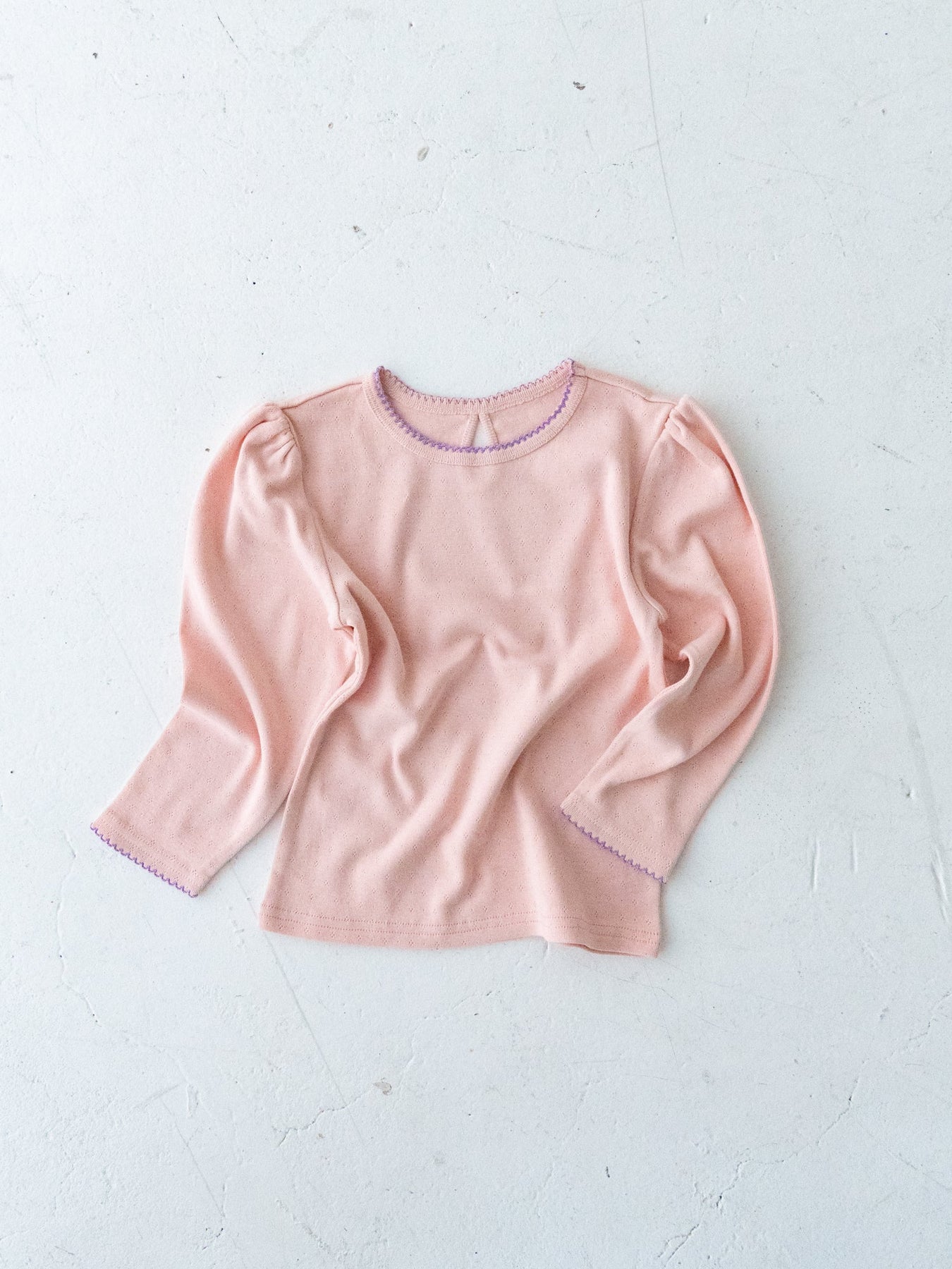 コットンのアイレット生地が魅力のロングスリーブトップス。