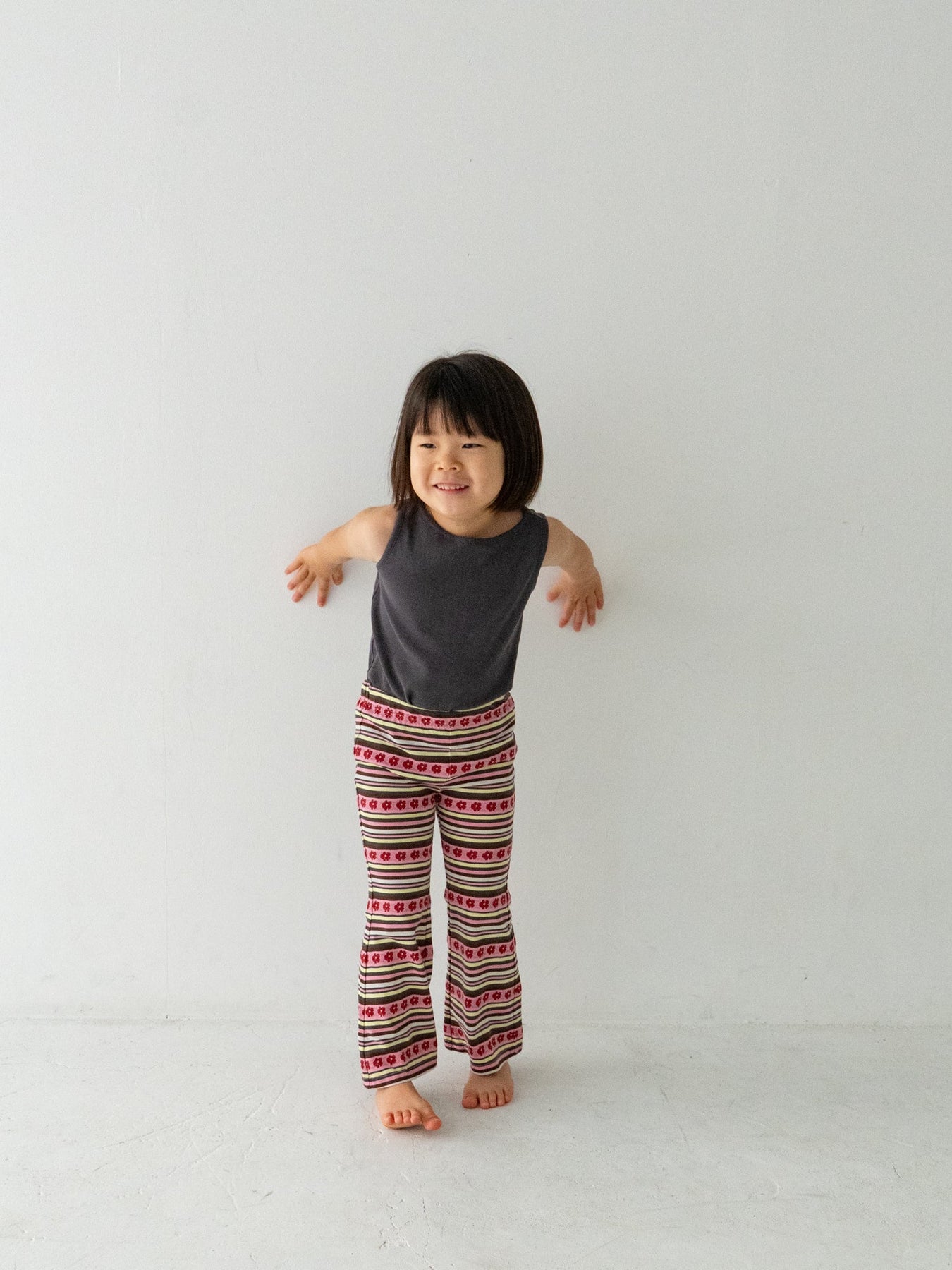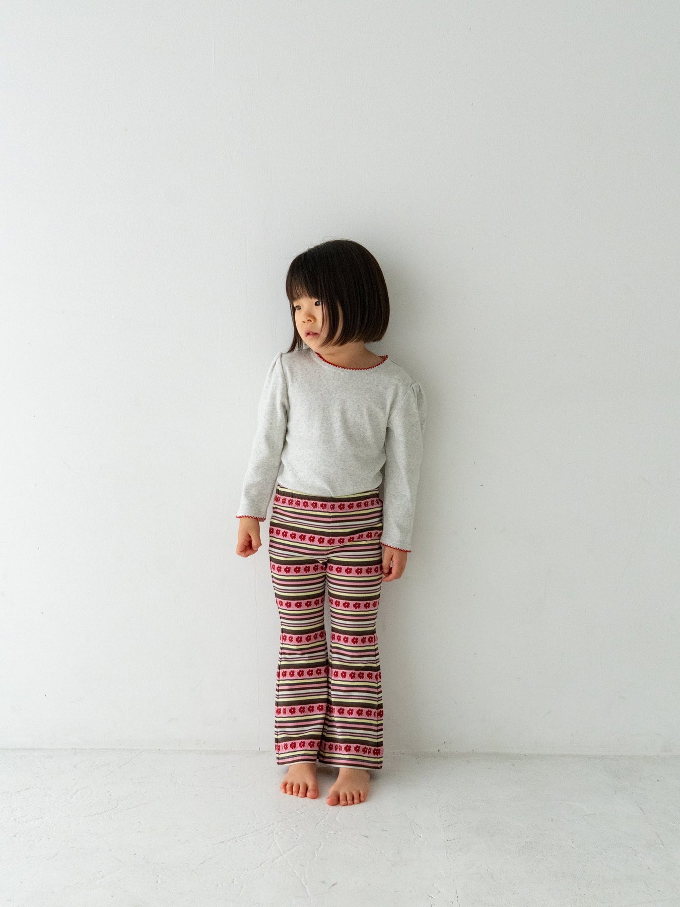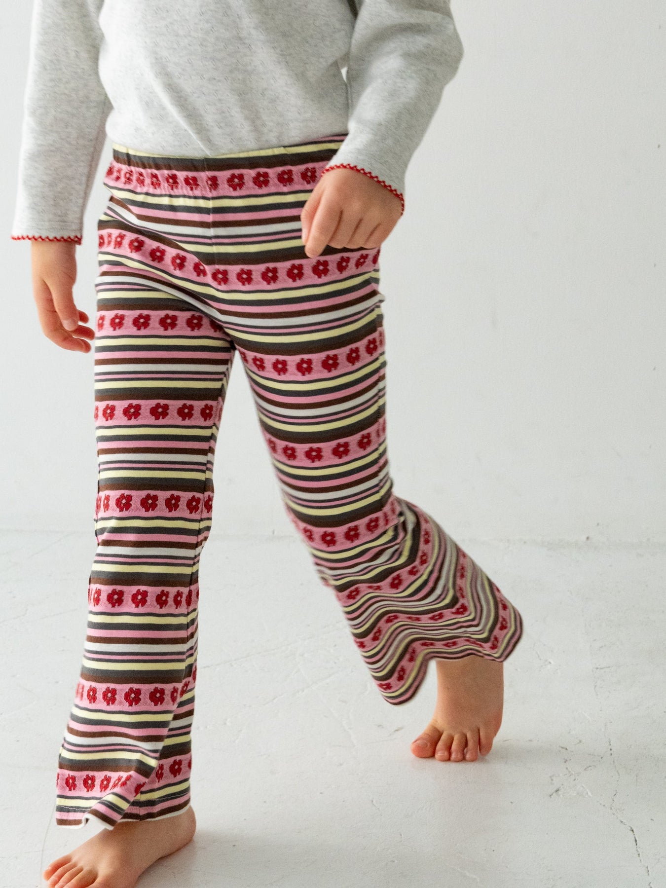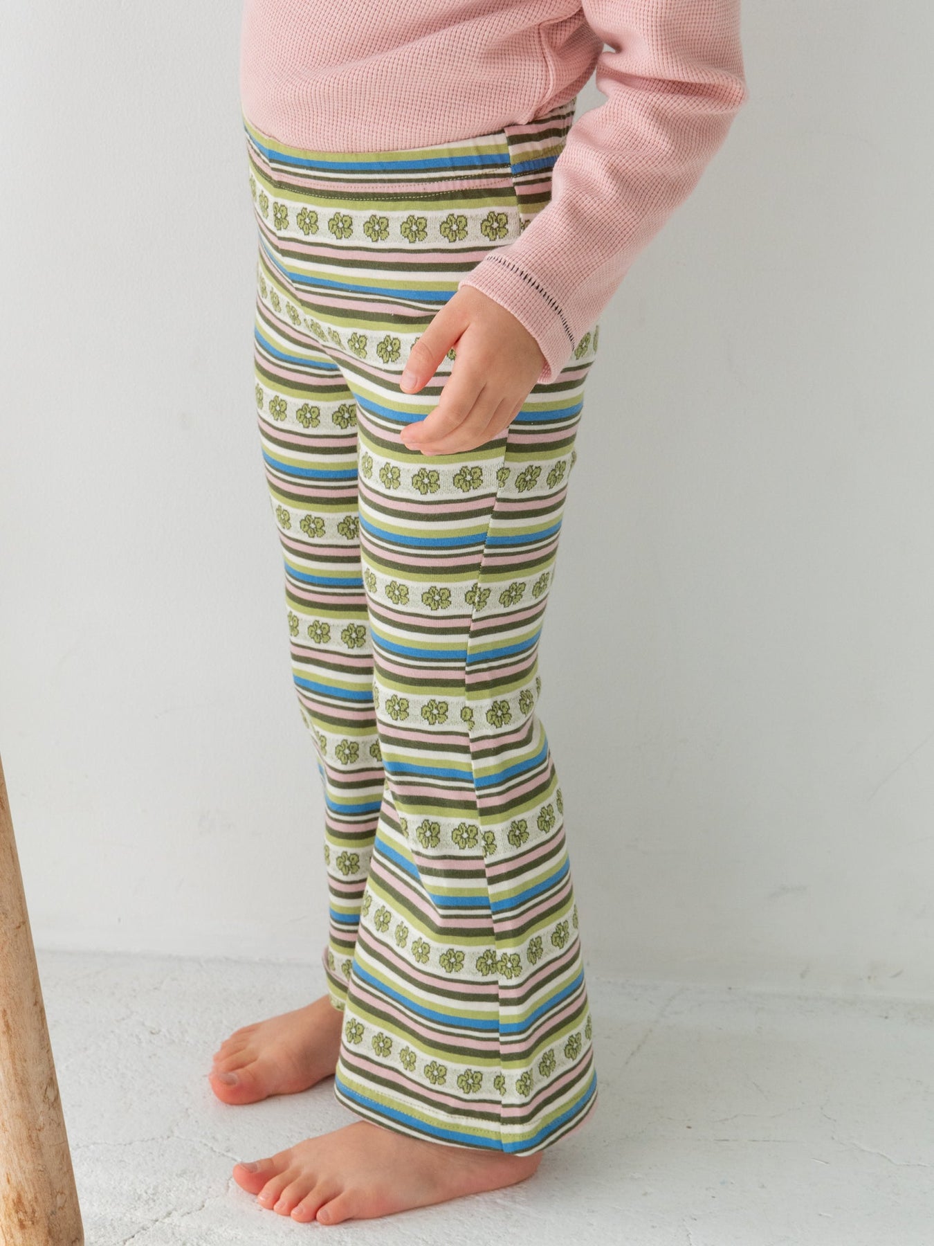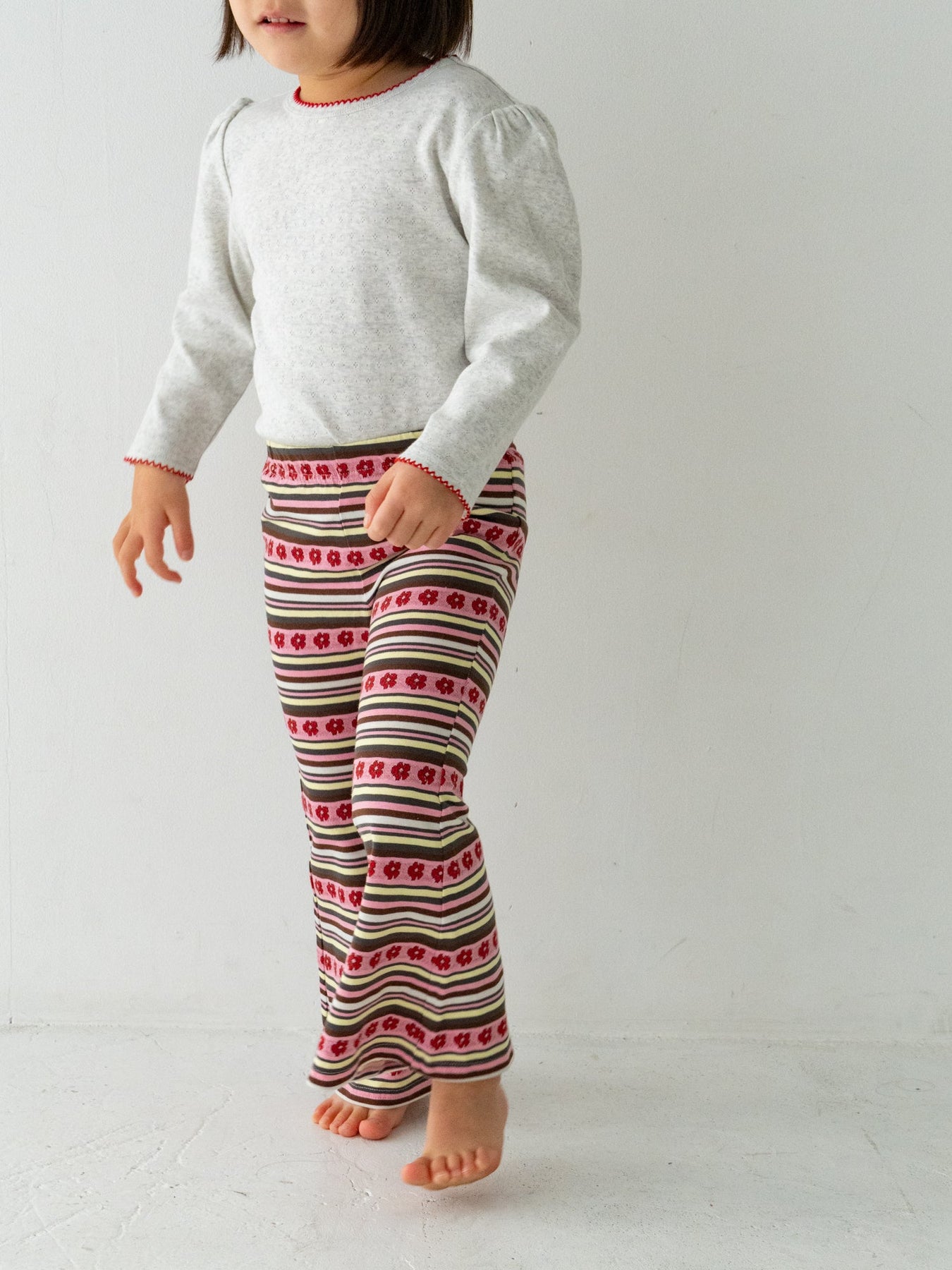 花柄 × ボーダーの組み合わせがたまらない、遊び心あふれるフレアパンツ。