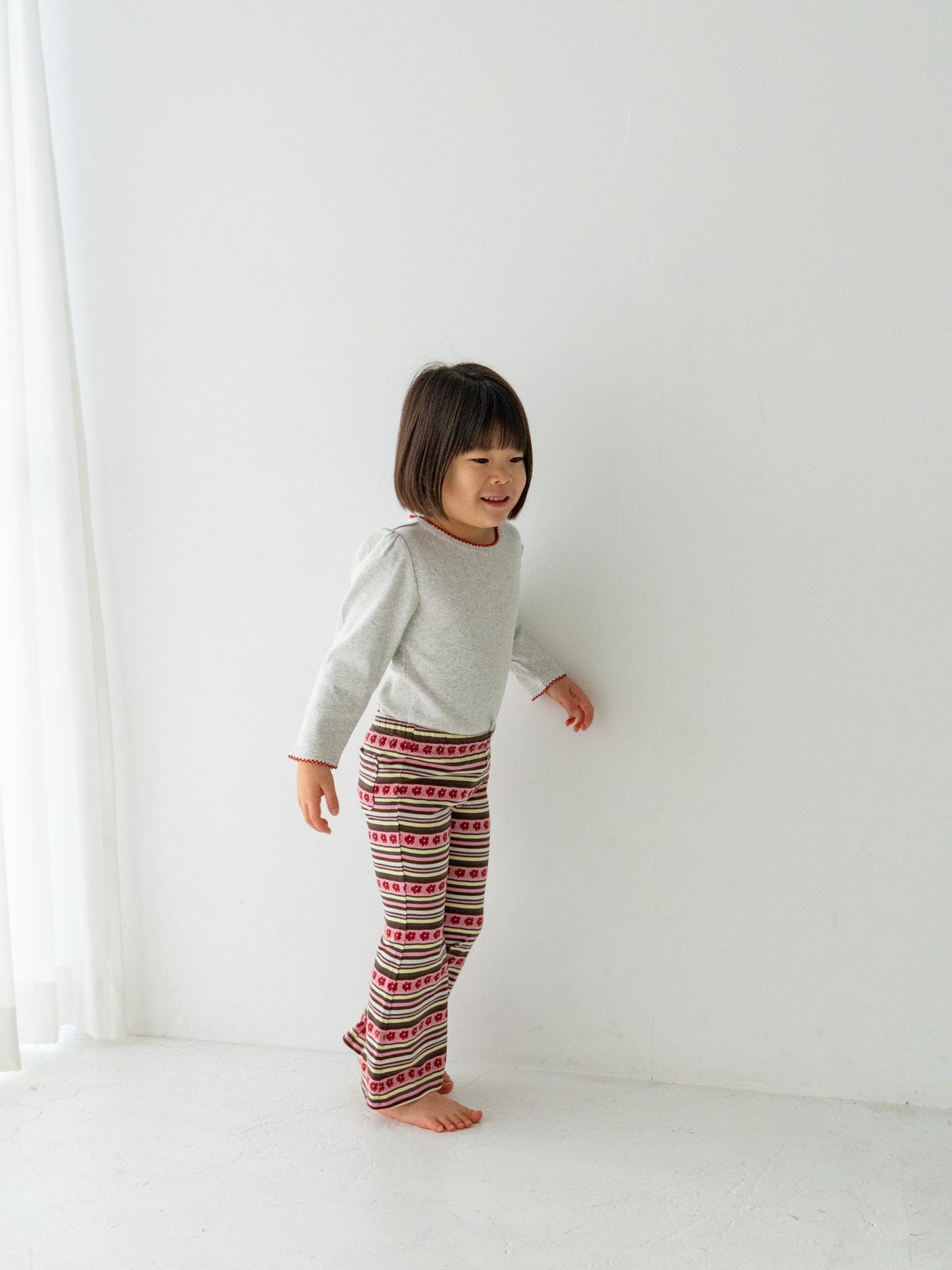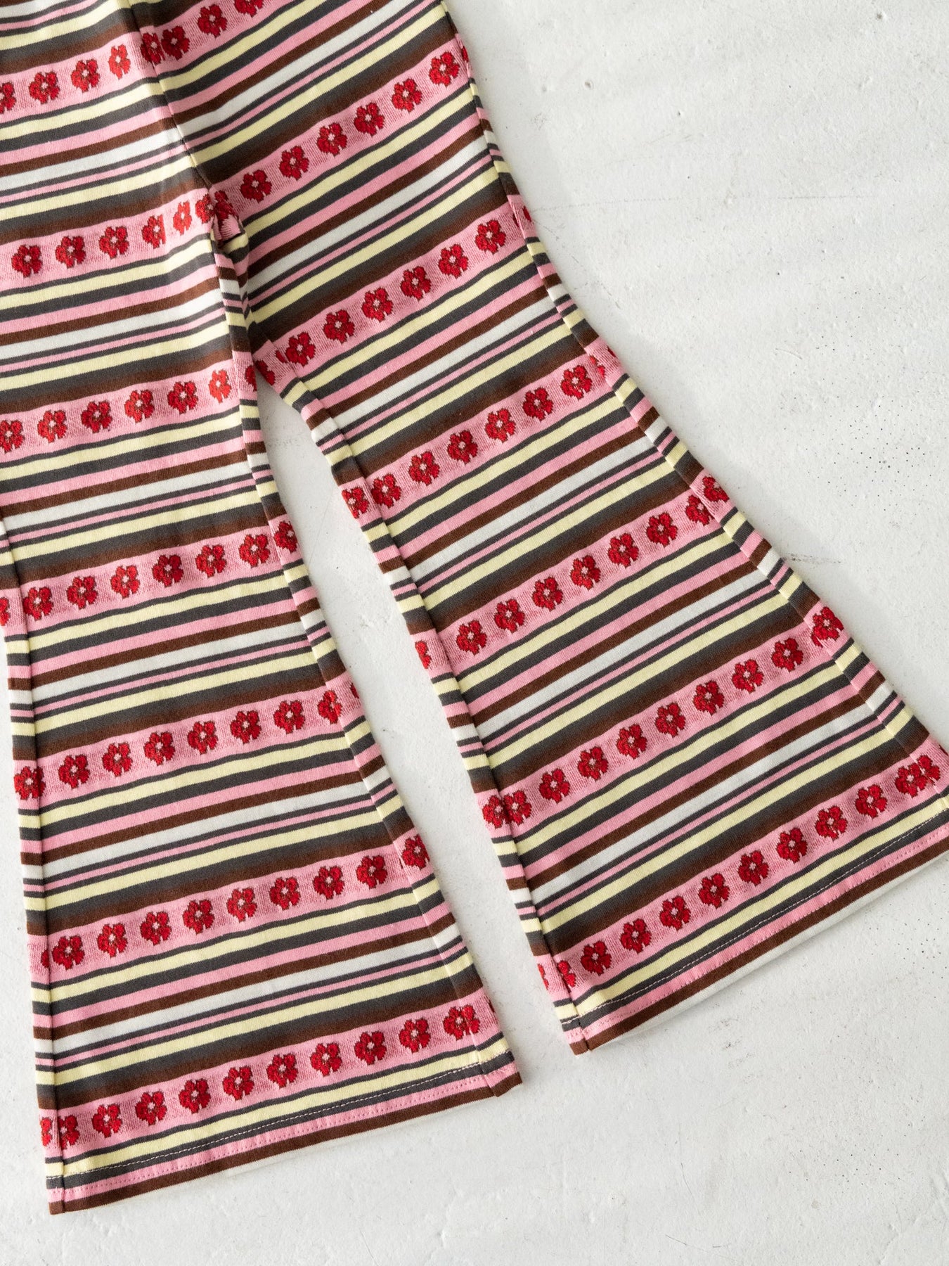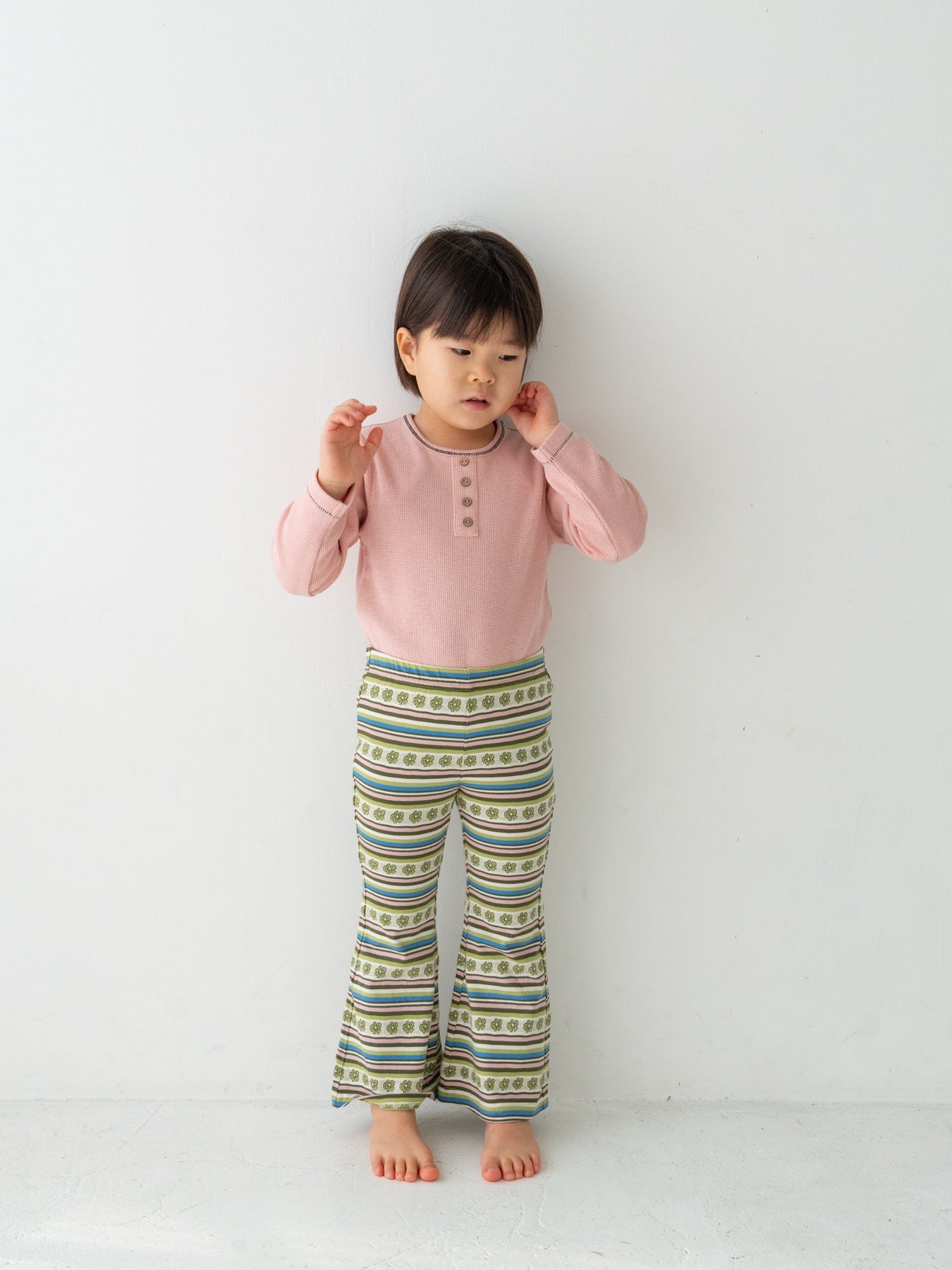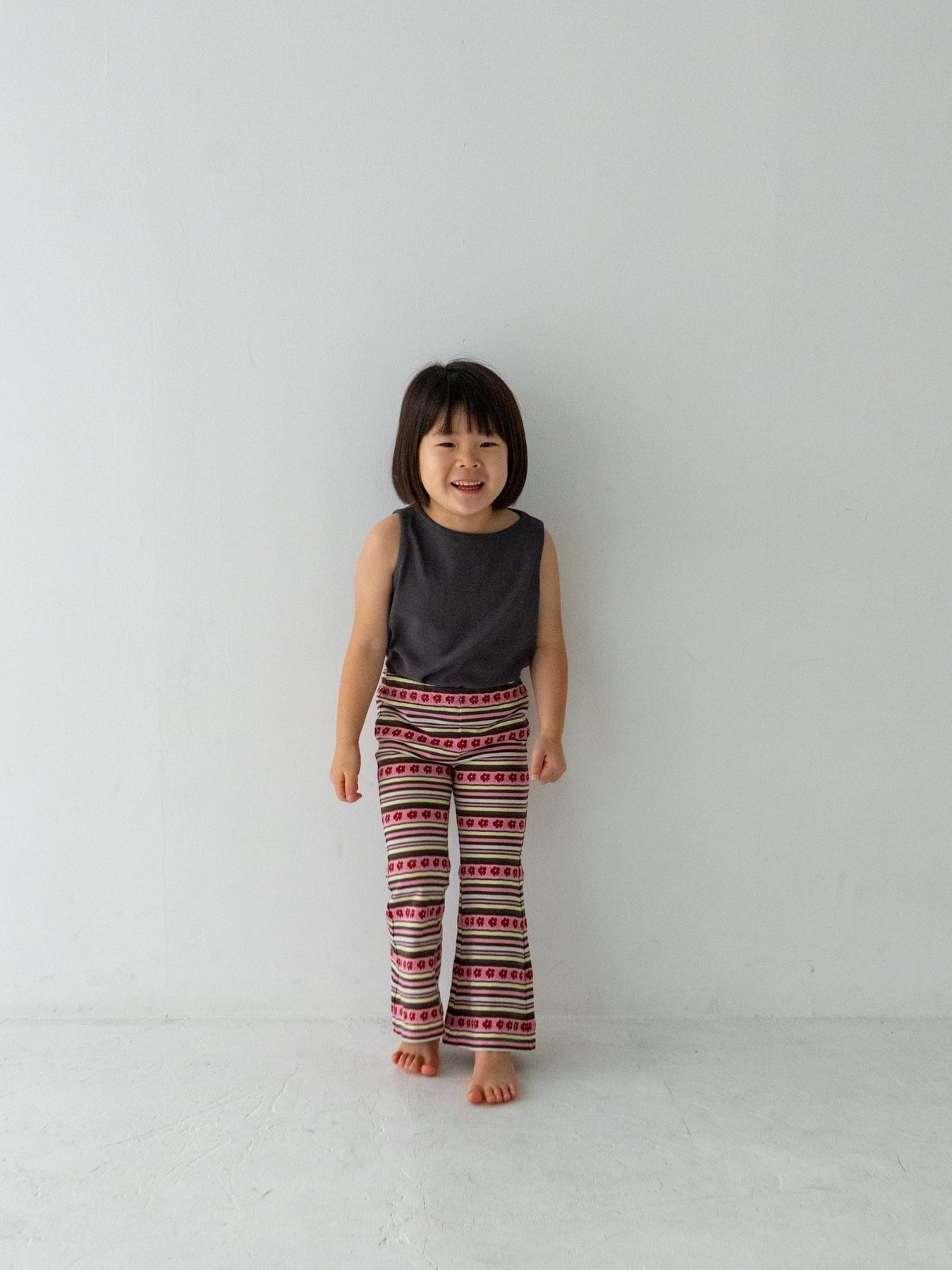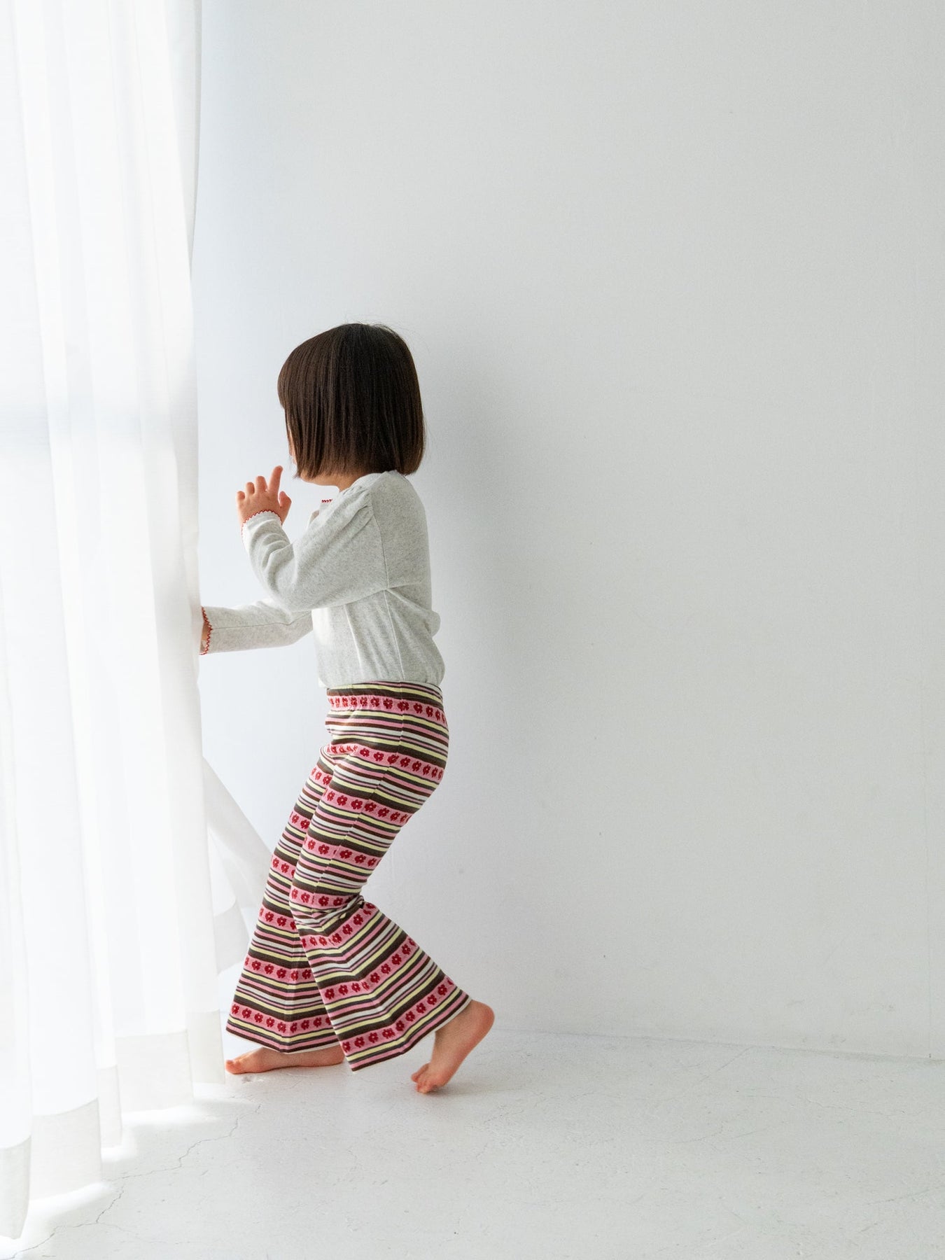 花柄 × ボーダーの組み合わせがたまらない、遊び心あふれるフレアパンツ。