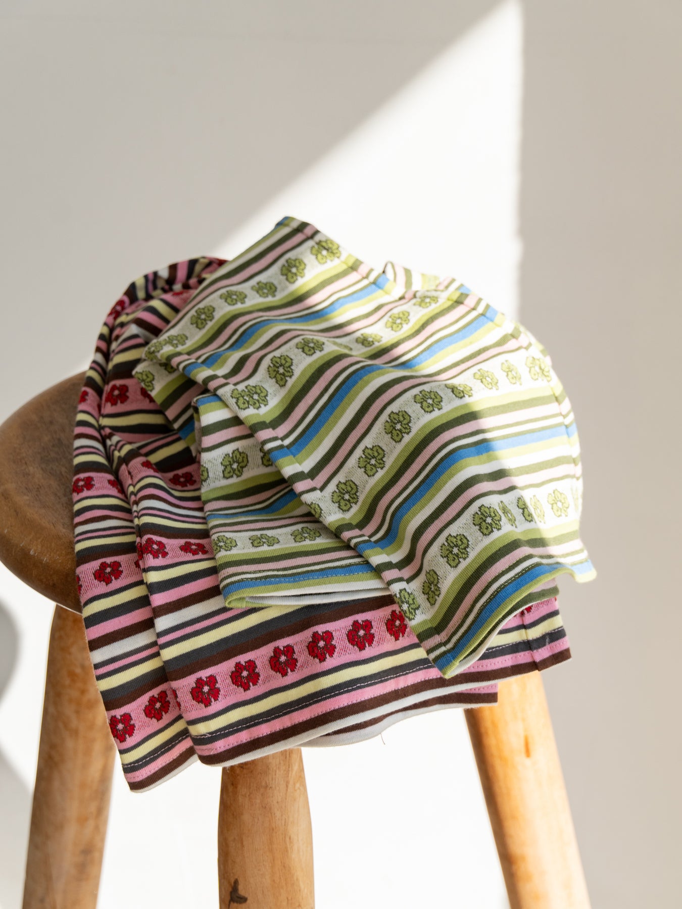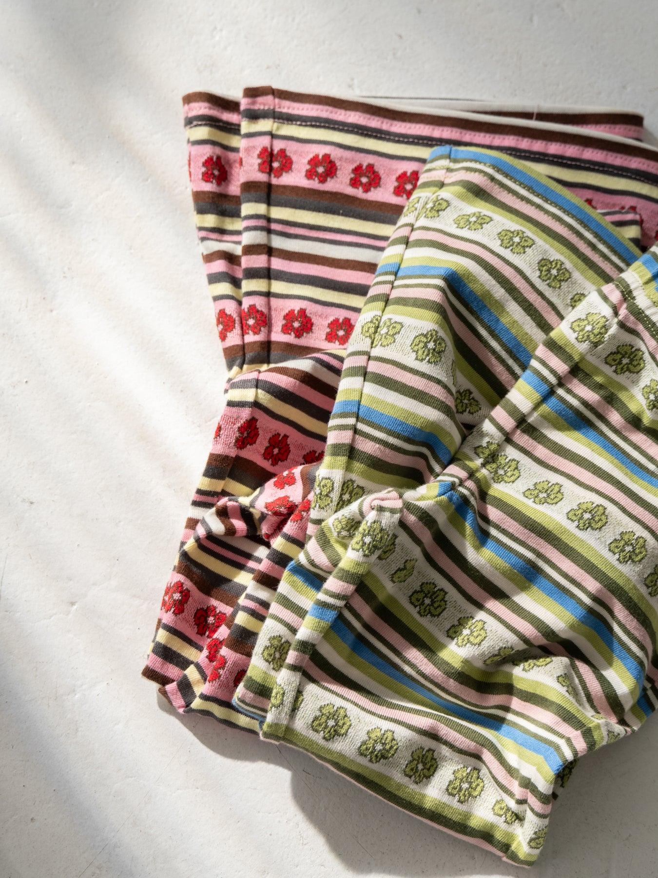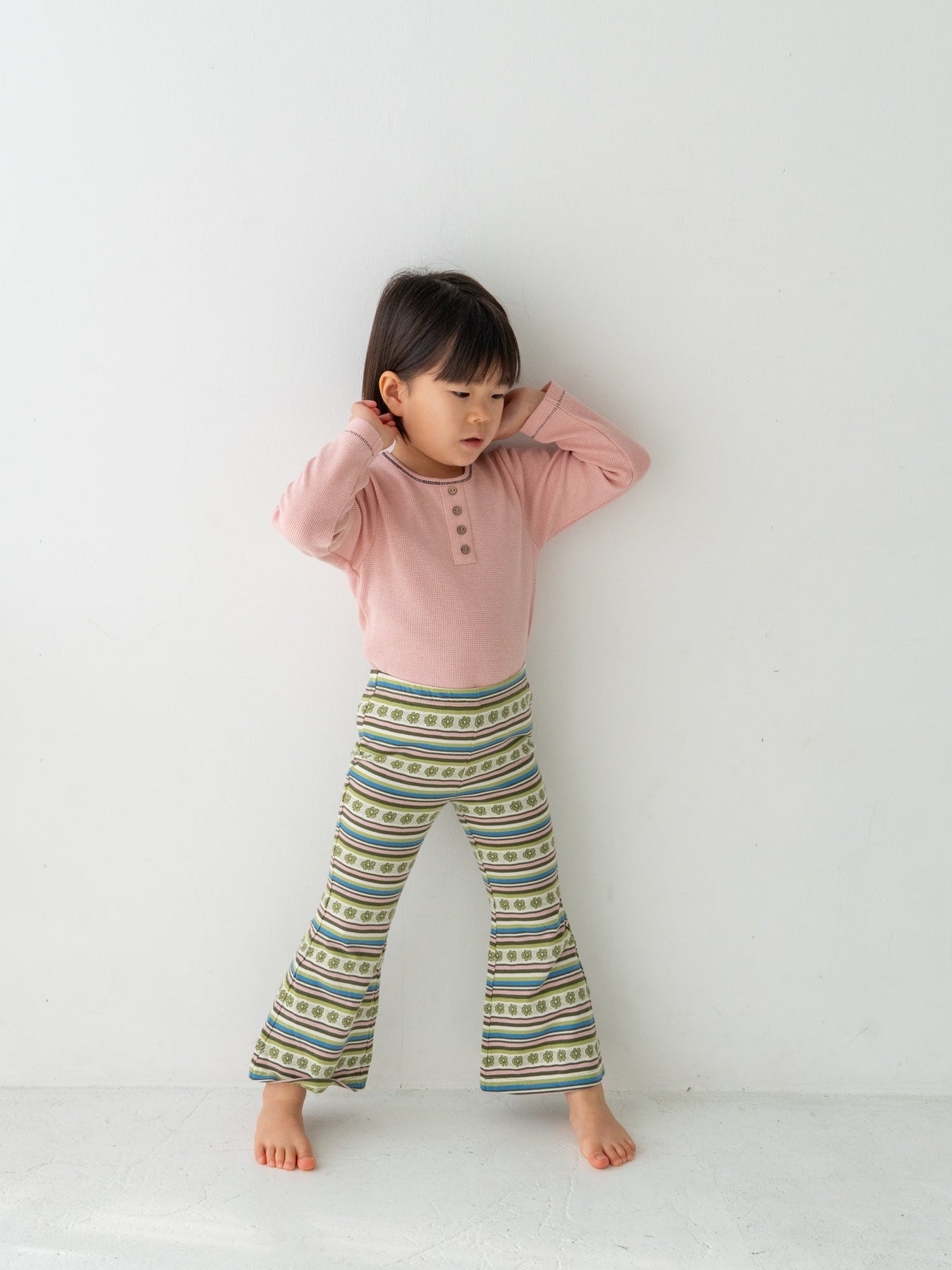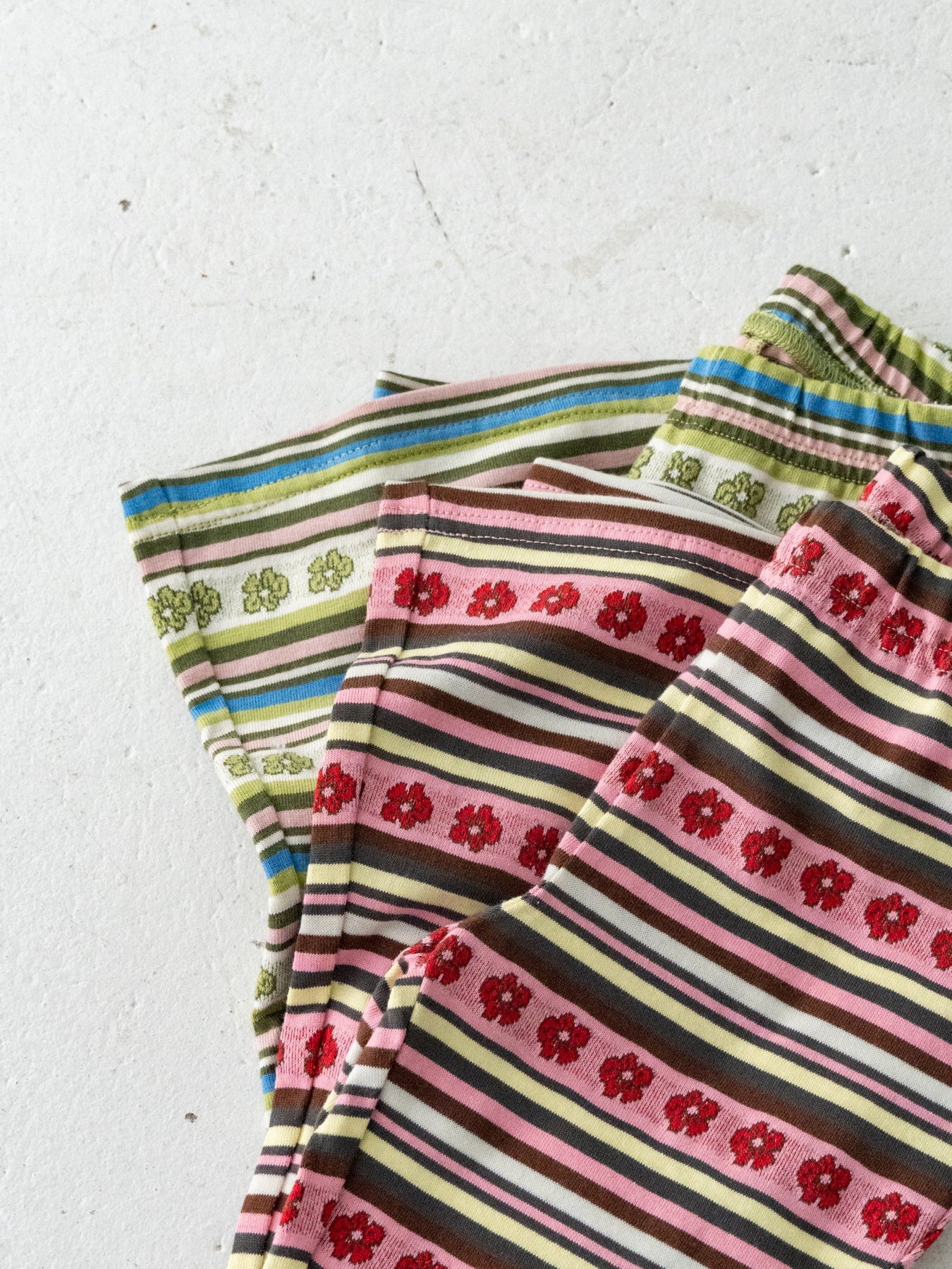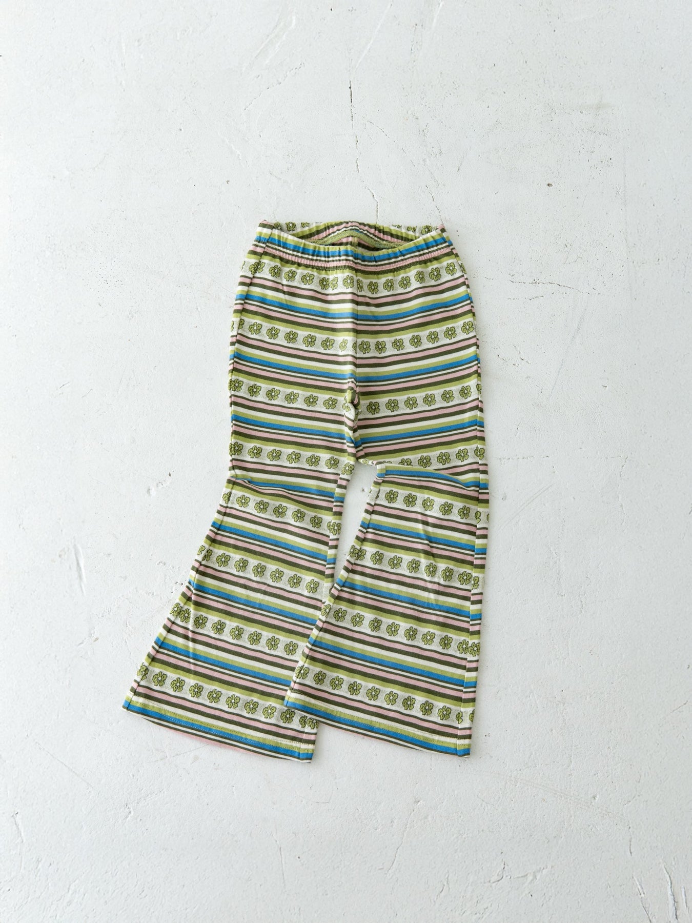 花柄 × ボーダーの組み合わせがたまらない、遊び心あふれるフレアパンツ。