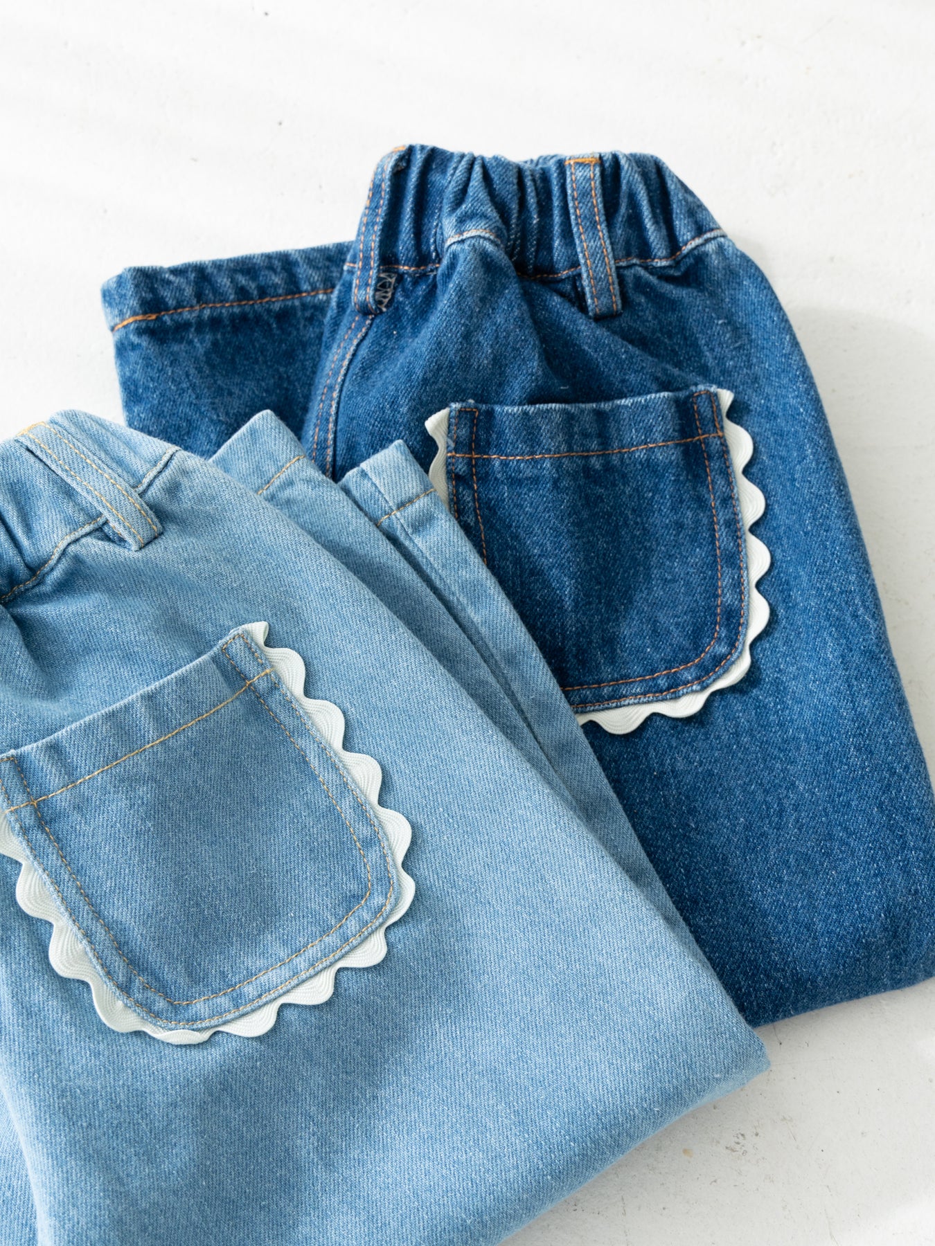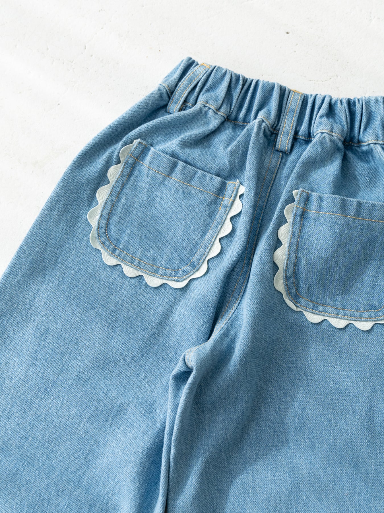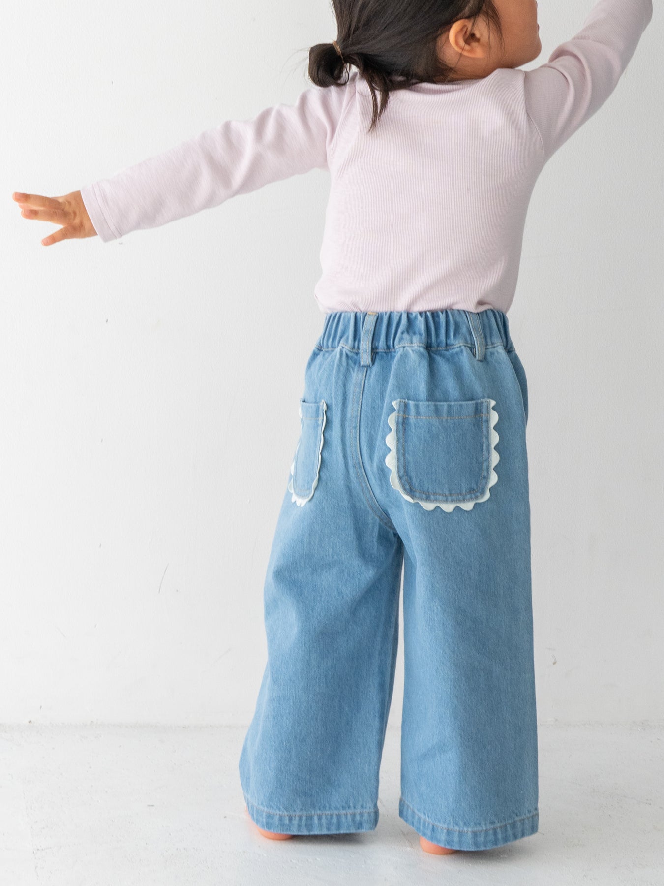 後ろ姿までかわいく仕上がる、特別なデニムパンツです。