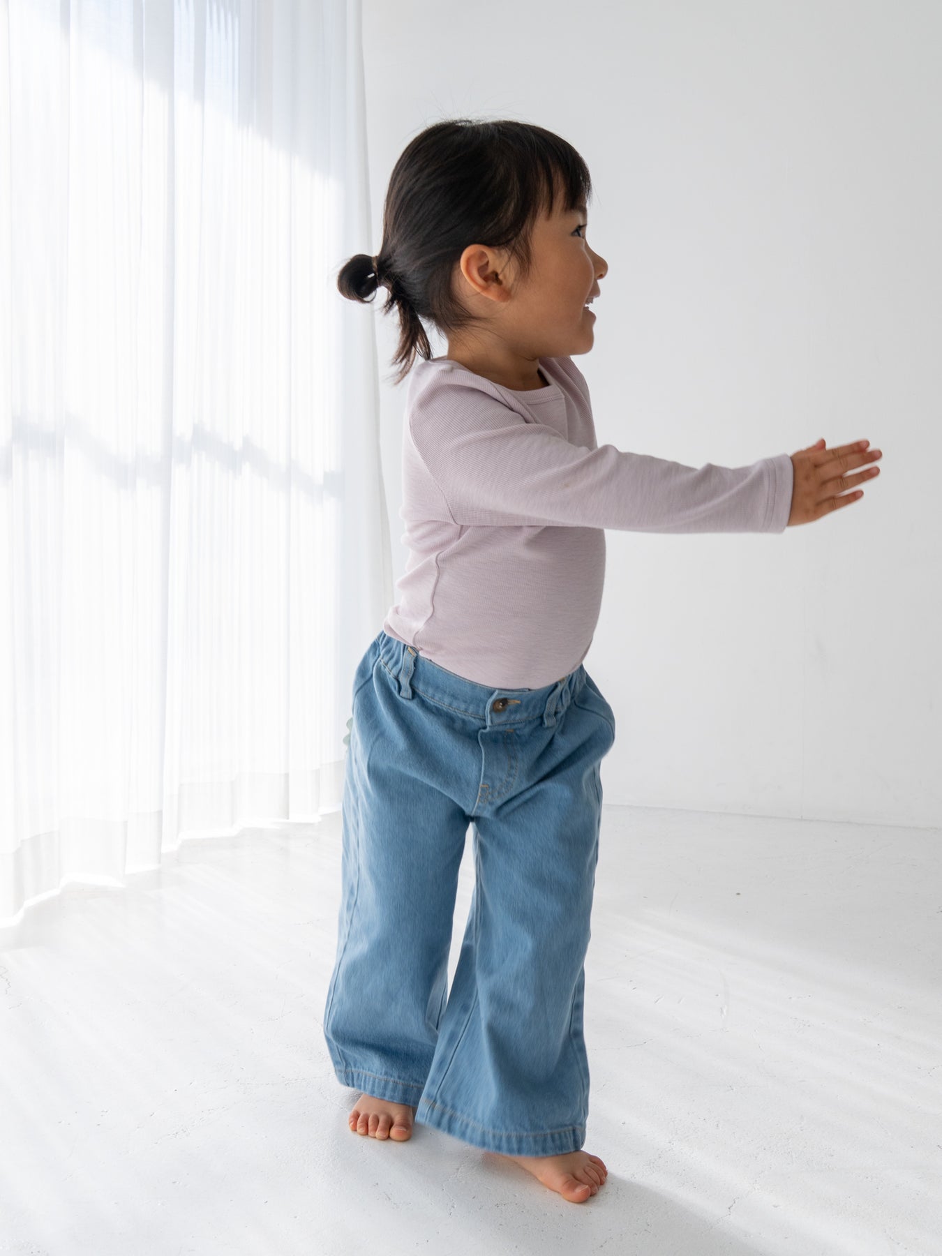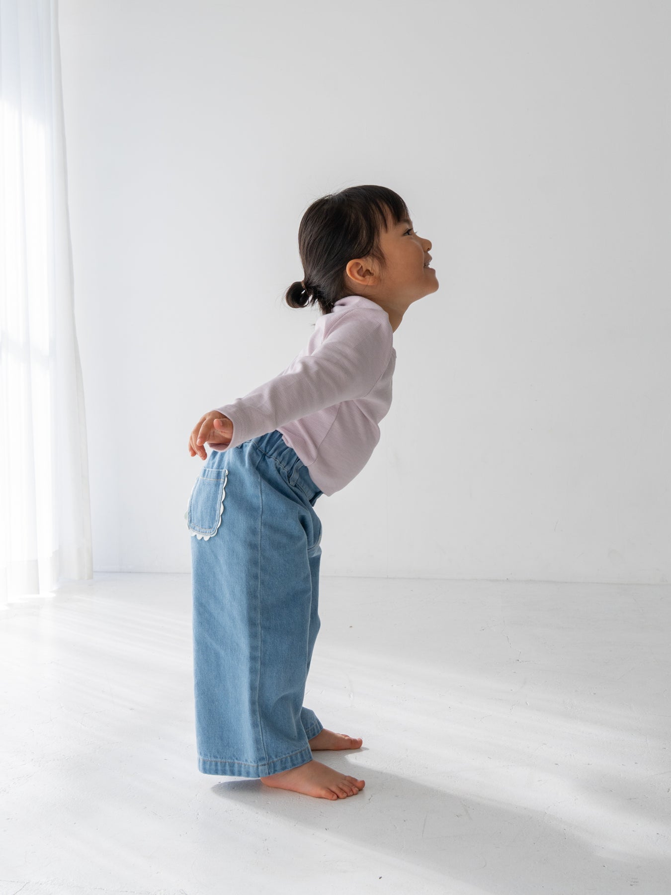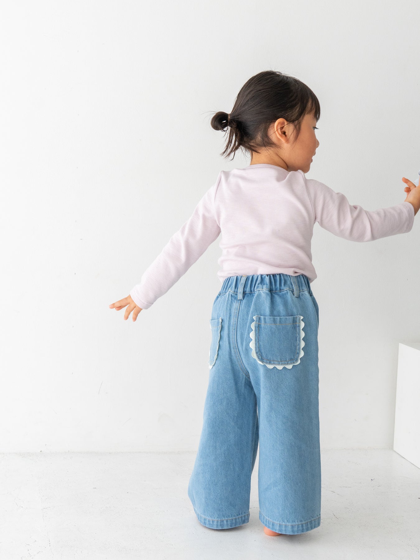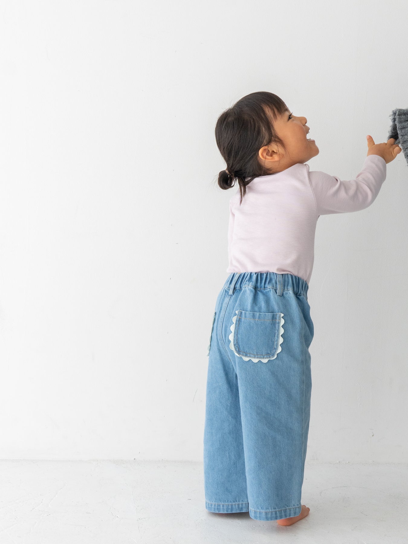 後ろ姿までかわいく仕上がる、特別なデニムパンツです。