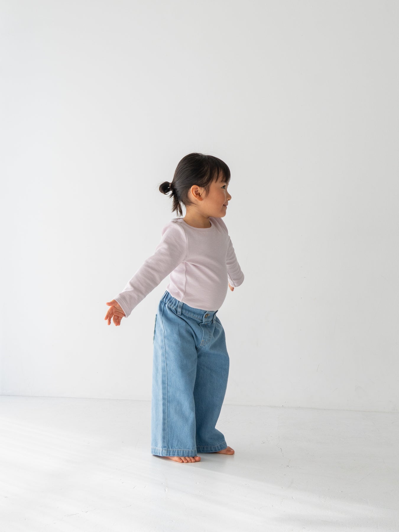 デニムなのに動きやすい、ゆとりのあるストレートワイドシルエットで、ストレスフリーなはき心地です。